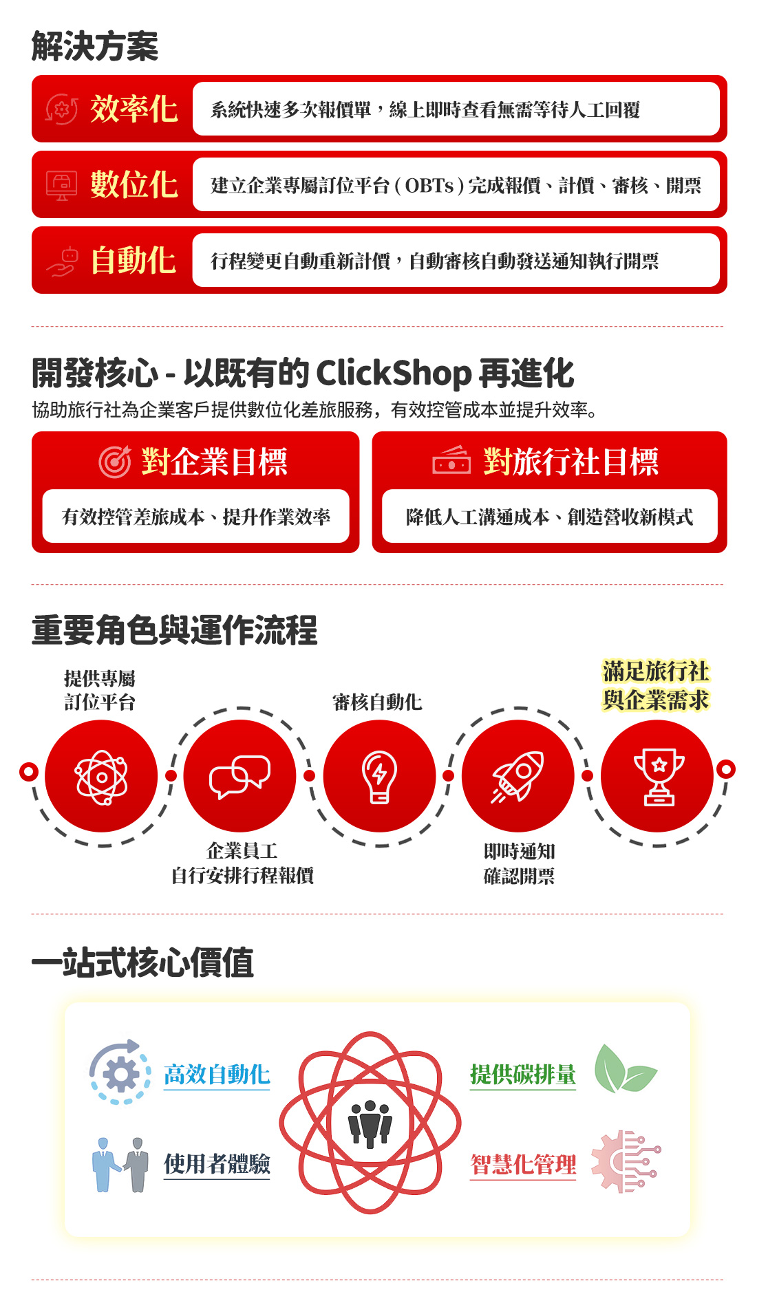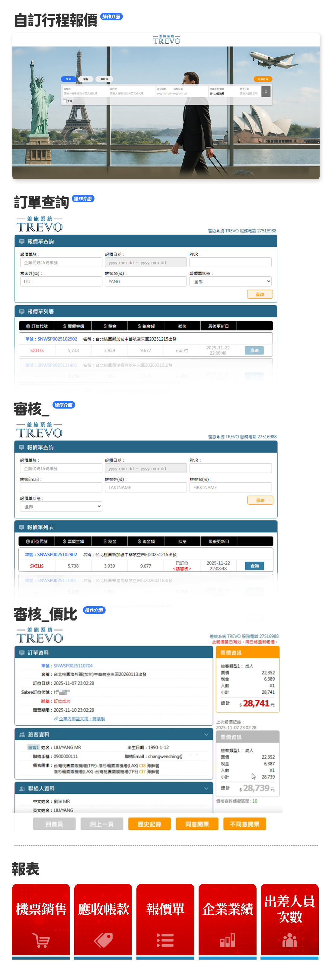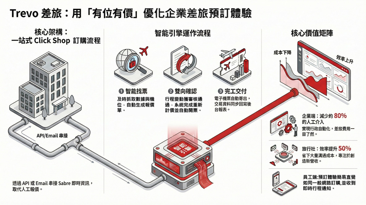 ② 雙向確認:不論審核通過或行程變更,系統皆能秒級完成「重新計價」,並自動觸發「開票」。